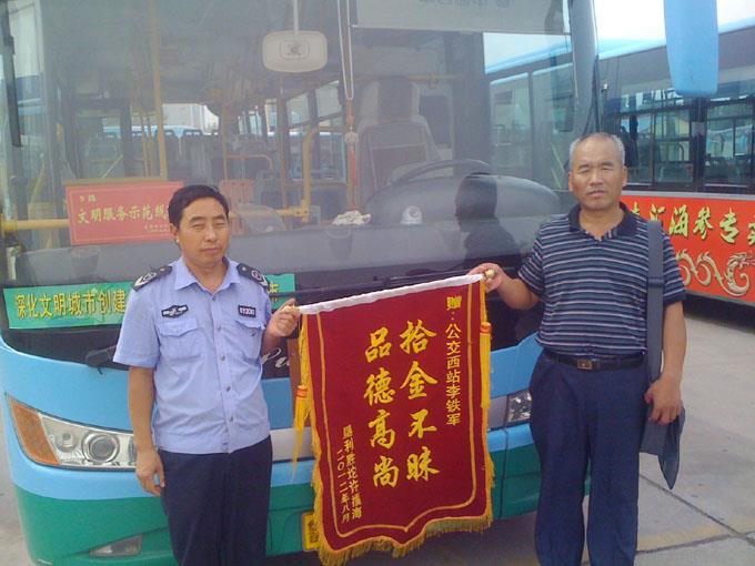8月17日,許福海先生到北京出差剛剛返回,由于得了感冒,加上有暈車習(xí)慣,身體特別的不舒服,乘坐李鐵軍駕駛的9路車到站時(shí)匆忙下車,卻把手提包忘到車上,當(dāng)時(shí)也未發(fā)現(xiàn)。李鐵軍到終點(diǎn)整理車廂衛(wèi)生時(shí),發(fā)現(xiàn)了許先生丟失的手提包,打開一看,里面有手機(jī)一部、現(xiàn)金300余元和身份證等各種證件、資料,于是趕緊將包保存好,回到車隊(duì)后,及時(shí)上交車隊(duì)并聯(lián)系到失主。許福海先生拿到失而復(fù)得的手提包時(shí),興奮地握著李鐵軍的手再三表示感謝。