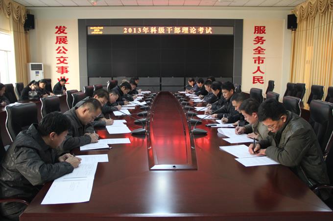 12月20日,按照市直機(jī)關(guān)工委、市學(xué)委辦公室的要求,市公交公司以開卷考試的形式,組織66名副科級以上干部進(jìn)行了干部理論考試。考試由市直機(jī)關(guān)工委統(tǒng)一命題,重點檢查了對黨的十八屆三中全會精神、習(xí)總書記“中國夢”的構(gòu)建、全市工作布局及對當(dāng)前理論熱點問題的看法等。市公交公司66名副科級以上干部認(rèn)真答卷,順利完成考試。