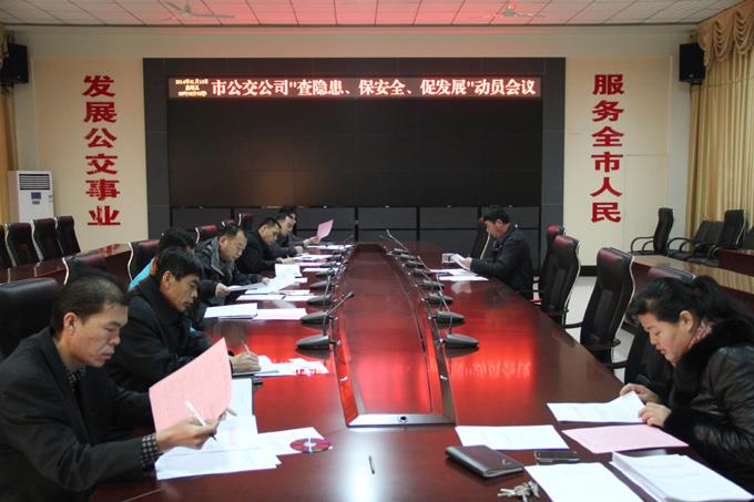 1月10日上午,市公交公司召開了各基層工會(huì)主席參加的動(dòng)員會(huì),會(huì)議部署了“查隱患”活動(dòng)的具體實(shí)施方案,傳達(dá)了市交通運(yùn)輸局工會(huì)主席針對本次活動(dòng)的講話精神,公司工會(huì)主席和安??崎L對活動(dòng)進(jìn)行了具體強(qiáng)調(diào),并作了具體分工。