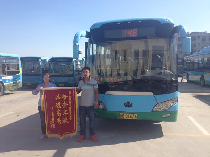 9月3日,家住東營區(qū)史口鎮(zhèn)寨王村的王國梁先生乘坐148路車外出,下車后發(fā)現錢包遺忘在公交車上。汽車四隊駕駛員郭嘉撿到了王國梁先生遺失的錢包,發(fā)現內有身份證、銀行卡、現金一萬二千余元,忙將其上交車隊暫時保管,車隊及時聯系失主并將失物完璧歸趙。王國梁接過失而復得的錢包顯得意外而又驚喜,執(zhí)意要給公交車駕駛員郭嘉師傅酬金3000元表示感謝,被她婉言謝絕了。翌日,王國梁拿著一面寫有“拾金不昧、品德高尚”的錦旗來到車隊,感謝郭嘉師傅拾金不昧的高尚品德。