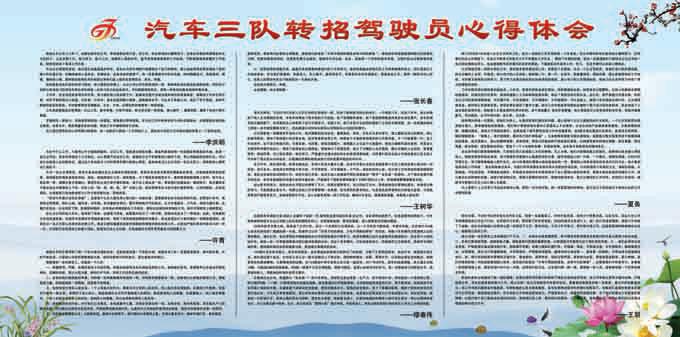近日,市公交公司為鍛造基層車隊學(xué)比趕超的濃厚工作氛圍,促進廣大職工進一步轉(zhuǎn)變工作作風,做到學(xué)有榜樣,趕有目標。汽車三隊組織2014年度公司轉(zhuǎn)招的駕駛員書寫了“轉(zhuǎn)招駕駛員工作經(jīng)驗及心得體會”,并制作成展板放在辦公樓大廳,供全體職工瀏覽觀看,激發(fā)大家從中學(xué)習(xí)轉(zhuǎn)招人員工作中那種安全駕駛、優(yōu)質(zhì)服務(wù)、樂于助人、團結(jié)同事的良好工作態(tài)度,以及低調(diào)務(wù)實、任勞任怨、埋頭苦干、持之以恒、頑強拼搏的進取精神,以此推動車隊整體工作再上新臺階。