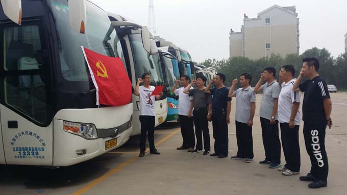 為慶祝中國(guó)共產(chǎn)黨建黨95周年,深化“兩學(xué)一做”主題教育活動(dòng),使全體黨員進(jìn)一步牢記入黨誓言。7月1日上午,東營(yíng)市公交公司汽車二隊(duì)組織全體黨員在停車場(chǎng)開展了重溫入黨誓詞活動(dòng)。