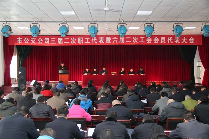 2017年2月12日上午8:30分,市公交公司召開了三屆二次職工代表暨六屆二次工會會員代表大會。大會共有代表88人,實到85人,請假3人,列席代表13人。大會對2016年度公司先進(jìn)集體及先進(jìn)個人進(jìn)行了表彰;公司領(lǐng)導(dǎo)為2016年度先進(jìn)集體、優(yōu)秀黨支部、先進(jìn)個人頒發(fā)了獎牌和證書;審議通過了公司經(jīng)理做的《2017年公司工作報告》、工會主席做的《2017年公司工會工作報告》以及《公司2017年財務(wù)工作報告》、《公司行車安全制度修改草案》、《公司加氣(油)站安全管理暫行辦法》等事宜。