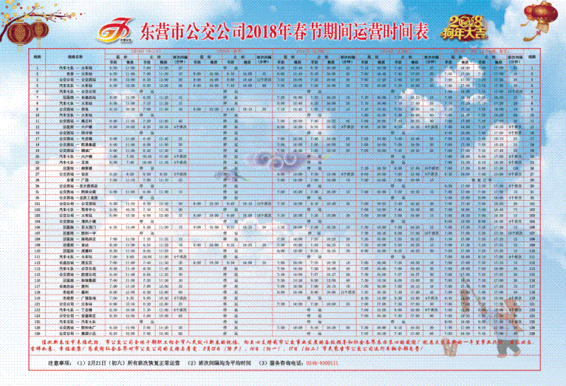 為答謝社會各界一直以來給予我市公交事業(yè)的關(guān)心和支持,東營市公交公司春節(jié)期間線路運(yùn)行時刻表新鮮出爐,今年年三十、年初一、年初二市民乘坐市公交公司運(yùn)行車輛全部免費(fèi)。