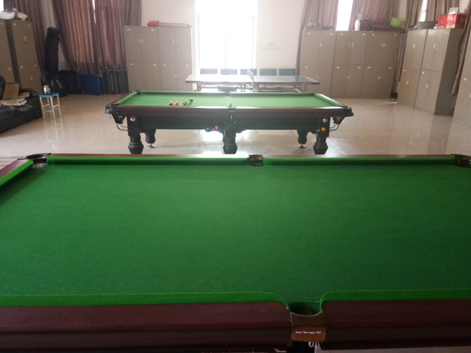 由于臺球有眾多的愛好者,使用頻繁,又加之有不少初學者不能掌握正確的使用方法,用球桿擊打母球時經常出現(xiàn)“爆桿”并戳到桌布上,加速了臺球設施的損壞,致使臺球桌無法使用。看到這一情況,雷鋒小組成員出資對臺球桌更換了新的桌布、一組臺球、一根架桿、六個球籠和六個桌腿墊子等一系列相關配件。