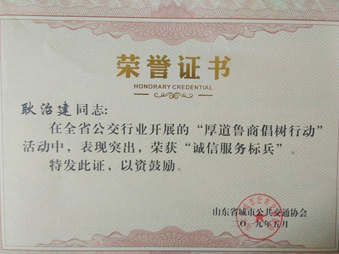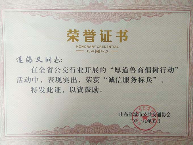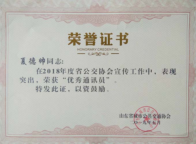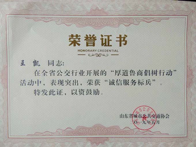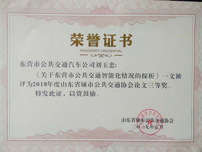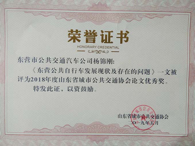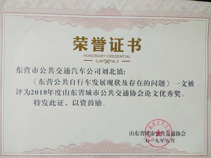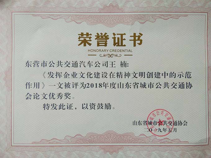 大會分別表彰了厚道魯商誠信公交企業(yè)、線路、標兵及宣傳工作先進單位、優(yōu)秀通訊員和優(yōu)秀研究成果論文。公司獲得山東省城市公共交通行業(yè)厚道魯商倡樹行動“誠信經(jīng)營企業(yè)”和山東省城市公共交通行業(yè)宣傳工作“先進單位”榮譽稱號,9路車組獲得 “誠信公交線路”榮譽稱號,公司王凱、耿治建、連海義等三名同志獲得全省公交行業(yè)“誠信服務標兵”榮譽稱號,夏德帥同志獲得全省公共交通行業(yè)“優(yōu)秀通訊員”榮譽稱號。由公司選送的《關于東營市公共交通智能化情況的探析》《發(fā)揮企業(yè)文化建設在精神文明創(chuàng)建中的示范作用》《東營公共自行車發(fā)展現(xiàn)狀及存在的問題》等3篇論文分別獲得三等獎1項,優(yōu)秀獎2項,并成功入選全省城市公共交通行業(yè)優(yōu)秀論文集。