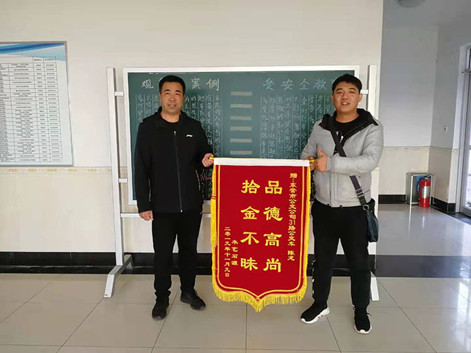2019年11月18日下午,公交公司汽車三隊來了一名手拿錦旗的年輕小伙,說是要對31路駕駛員陳龍拾金不昧的行為表示感謝。