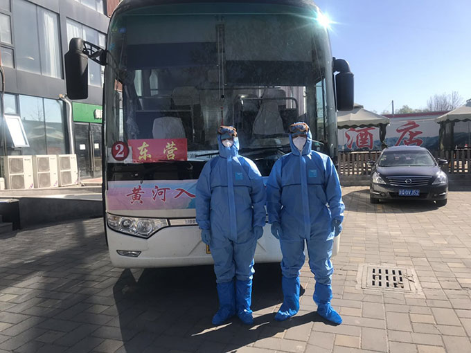 3月17日晚,汽車二隊接到公司指令,迅速動員調(diào)集10名駕駛員,5臺大巴車組成轉(zhuǎn)運隊伍,配合市防疫指揮部駐北京工作專班執(zhí)行入境人員回東營市區(qū)的轉(zhuǎn)運任務。接到指令后,汽車二隊迅速定人定車,在短短30分鐘內(nèi)完成人員和車輛的調(diào)集。在市防疫指揮部與公安、衛(wèi)生等部門工作人員共同參加完簡短又嚴肅的部署動員會后,全體參運駕駛員不顧安危,道別家人,次日便身穿防護服,全副武裝,奔赴防疫前線,成為了“抗疫逆行者”。