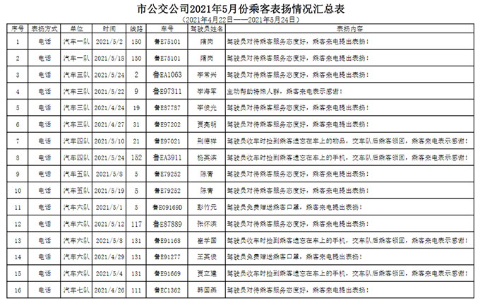 廣大駕駛員要以受到表?yè)P(yáng)的同志為榜樣,愛崗敬業(yè)、無(wú)私奉獻(xiàn),為樹立和維護(hù)公司的外在形象作出貢獻(xiàn)。同時(shí)也希望受到表?yè)P(yáng)的同志戒驕戒躁,再接再厲,發(fā)揮模范作用,繼續(xù)為公司的服務(wù)提升工作貢獻(xiàn)力量。