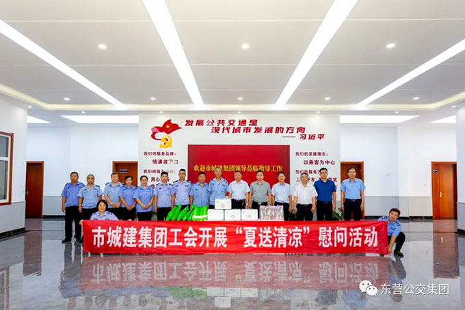 2023年8月3日上午,市城建集團黨委副書記、總經(jīng)理李德月,工會主席李鵬、總工程師程云奎一行到東營公交集團開展“夏送清涼”活動,東營公交集團趙龍同志陪同慰問活動。