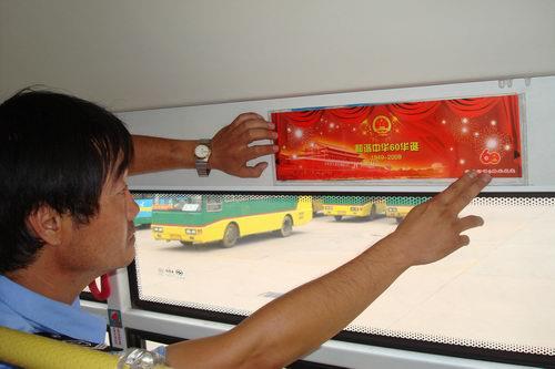 汽車(chē)七隊(duì)在8路車(chē)組車(chē)廂內(nèi)張貼國(guó)慶宣傳貼