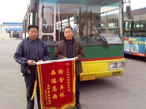 11月17日,家住墾利縣城的李家林先生拿著寫有“拾金不昧、品德高尚”的錦旗來到了市公交公司汽車三隊對李業(yè)縣師傅表示感謝。經(jīng)車隊了解得知,11月10日汽車三隊駕駛員李業(yè)縣在運(yùn)行完117路班次后正常清理車廂衛(wèi)生時發(fā)現(xiàn)了一個黑色皮包并立即將皮包上交車隊。車隊負(fù)責(zé)人通過現(xiàn)場清點,發(fā)現(xiàn)皮包內(nèi)共有現(xiàn)金2600余元,賬單一宗,根據(jù)包里面的信息及時聯(lián)系到失主李家林。當(dāng)李家林先生看到了失而復(fù)得的錢包時,當(dāng)即拿出200元塞給李業(yè)縣以表示謝意,被李業(yè)縣婉意謝絕。回去后,李家林先生心情久久不能平靜,特意制做了錦旗送到車隊,以表達(dá)感激之情,并要求車隊對李業(yè)縣師傅這種拾金不昧的優(yōu)良品質(zhì)進(jìn)行表揚(yáng)。李業(yè)縣同志作為剛到公交公司參加工作的新員工,在面對失主巨額財物的“誘惑”下,不為利益所動,秉承和發(fā)揚(yáng)了公交人一貫的高尚品質(zhì),他的所作所為充分展現(xiàn)了一名公交駕駛員應(yīng)有的職業(yè)道德素質(zhì)。