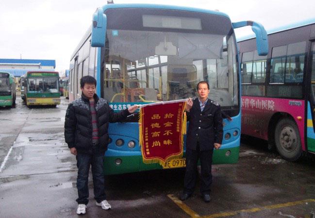2010年12月13日上午,東營區(qū)龍居鎮(zhèn)麻灣村孫路、趙雪冒著紛紛揚揚的雪花來到市公交公司汽車三隊,將一面寫有“拾金不昧、品德高尚”的錦旗送到車隊領(lǐng)導(dǎo)手中,對139路駕駛員孫明軍同志表示感謝,并對公交公司培養(yǎng)出這么好的員工表示敬意。