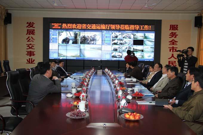 檢查組在相關(guān)領(lǐng)導(dǎo)的陪同下來(lái)到東營(yíng)公交智能調(diào)度指揮中心進(jìn)行了實(shí)地檢查與座談。工作人員將公交智能調(diào)度系統(tǒng)的實(shí)時(shí)監(jiān)控、數(shù)據(jù)查詢、統(tǒng)計(jì)等功能和公交3G視頻監(jiān)控系統(tǒng)的遠(yuǎn)程視頻監(jiān)控、錄像資料查詢、遠(yuǎn)程指揮調(diào)度以及安全防范等功能向謝廳長(zhǎng)以及各位領(lǐng)導(dǎo)進(jìn)行了詳細(xì)的講解和演示。