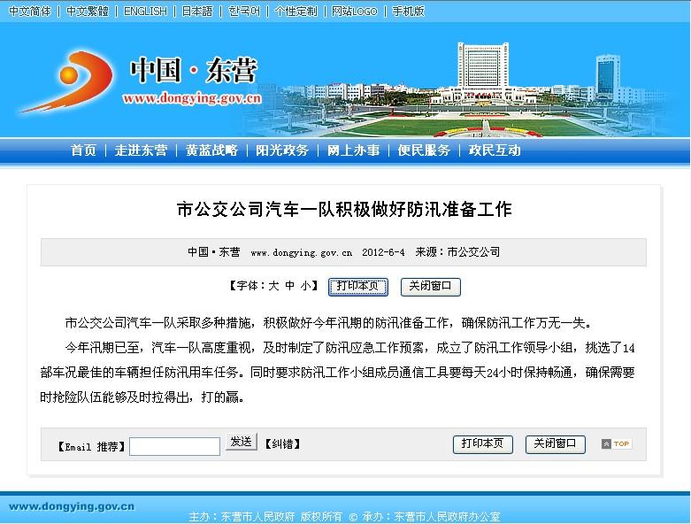 2012年6月4日東營市政府網(wǎng)站報道