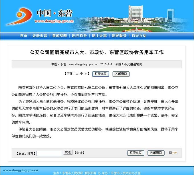 2013年2月1日東營市政府網(wǎng)站報道