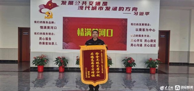 近日,失主楊佳琛帶著一面寫有“拾金不昧完璧歸趙,品德高尚學(xué)習(xí)榜樣”的錦旗來到東營公交公司汽車一隊(duì),感謝車隊(duì)121路駕駛員劉永波的拾金不昧。